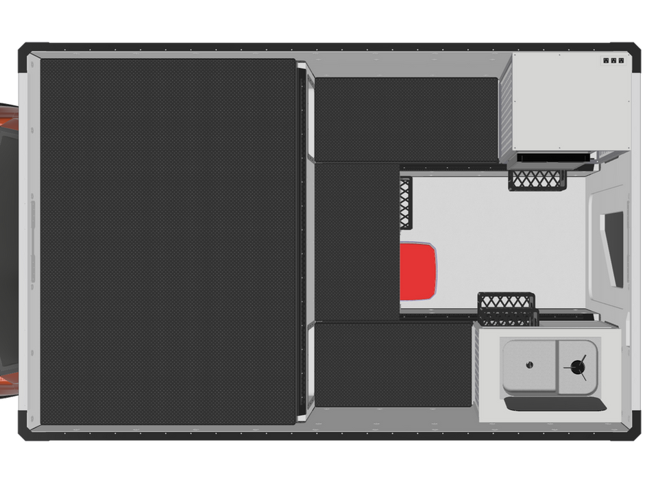 A roomy, ultralight truck camper featuring our modular layout system that comfortably accommodates 4 adults.